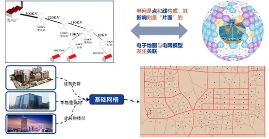 电网GIS平台的“站线变户” 电网模型主要是管理和展现范围仅仅限于构成电网的“点和线”管理和展现,缺少关联的地理空间区域的管理,未能将电子地图的语义与电网模型真正发生关联,电网模型与地图信息割裂,缺少电网对供电区的互作用的描述方式。未能充分利用电子地图的真正价值。